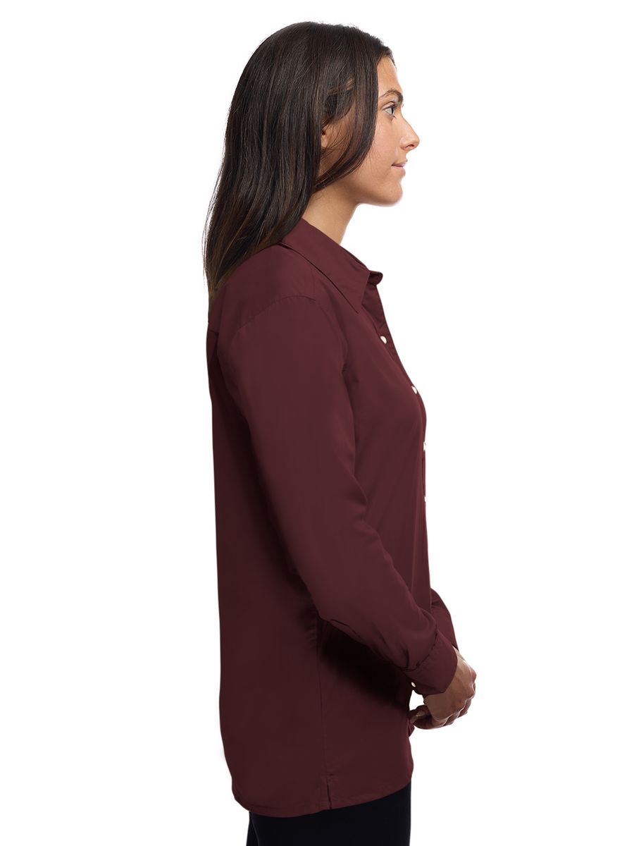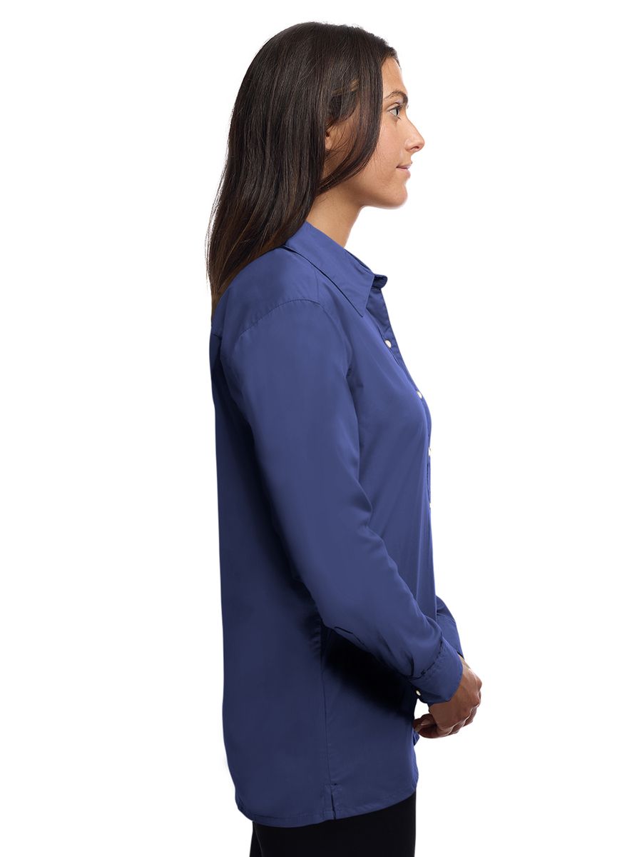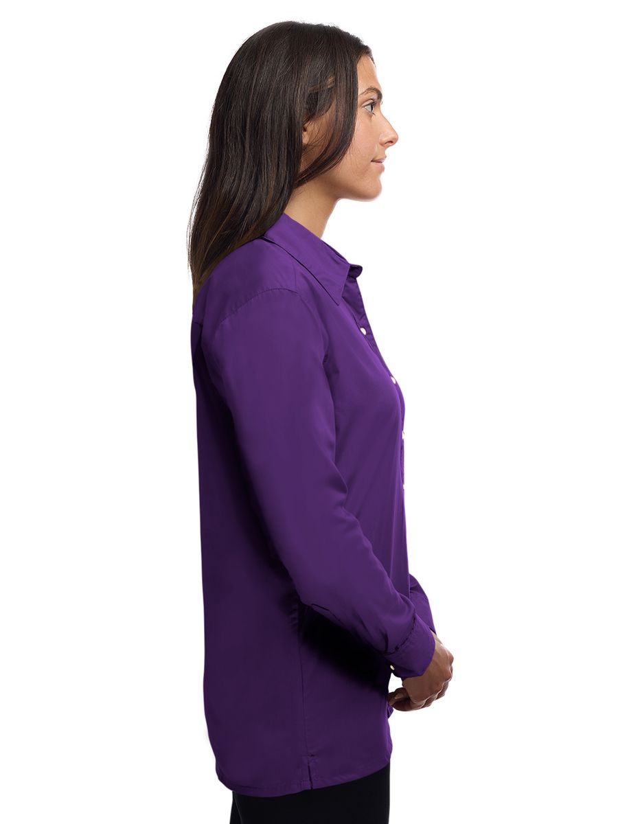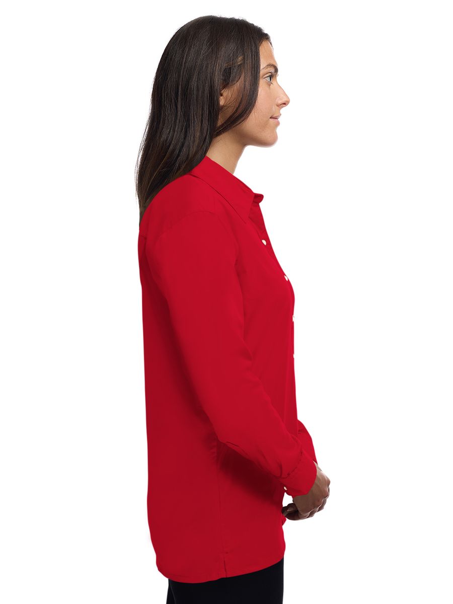 Lightweight in warmth but heavy in style, this ladies 5.5 oz. long-sleeve shirt will make a great impression regardless of the occasion! Made of a 65% polyester/35% cotton blend, this eye-catching dress shirt has stain-release technology and is both wrinkle and crease resistant. It features a double-back yoke, two side back pleats, a straight hemmed bottom, bone-horn buttons, adjustable cuffs and a spread collar. Available in several colors and in sizes from XS to 4XL, this fashionable item is perfect fit for any wardrobe.