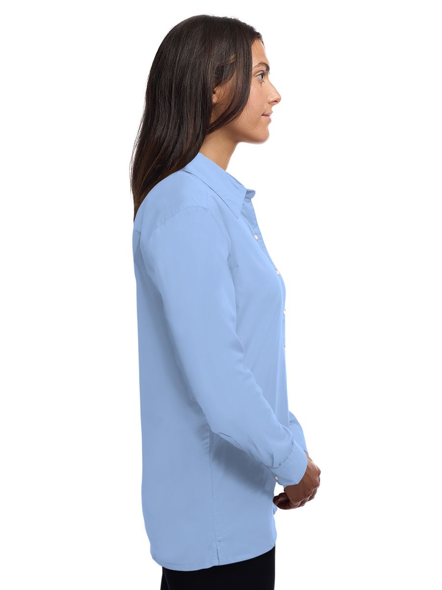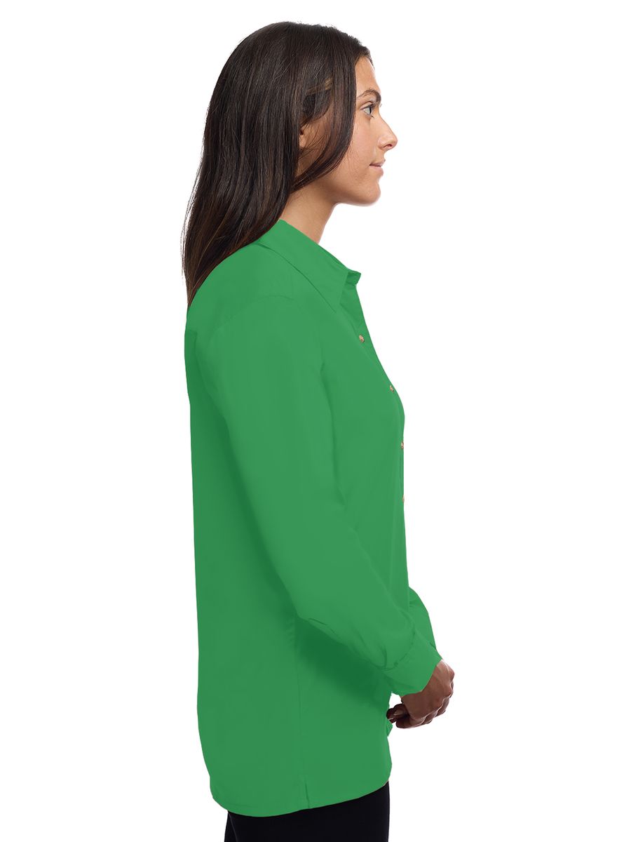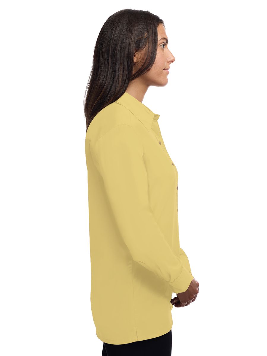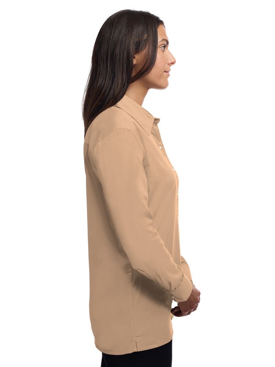 Lightweight in warmth but heavy in style, this ladies 5.5 oz. long-sleeve shirt will make a great impression regardless of the occasion! Made of a 65% polyester/35% cotton blend, this eye-catching dress shirt has stain-release technology and is both wrinkle and crease resistant. It features a double-back yoke, two side back pleats, a straight hemmed bottom, bone-horn buttons, adjustable cuffs and a spread collar. Available in several colors and in sizes from XS to 4XL, this fashionable item is perfect fit for any wardrobe.