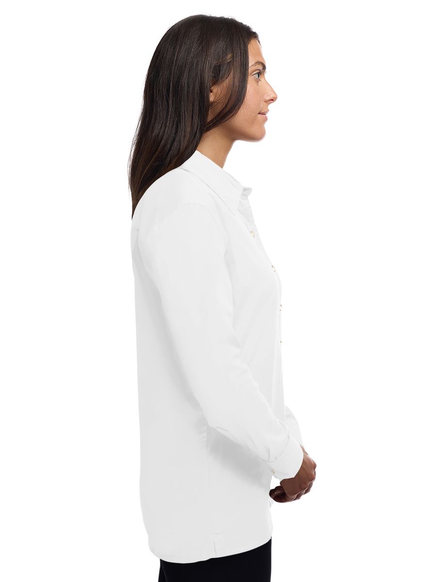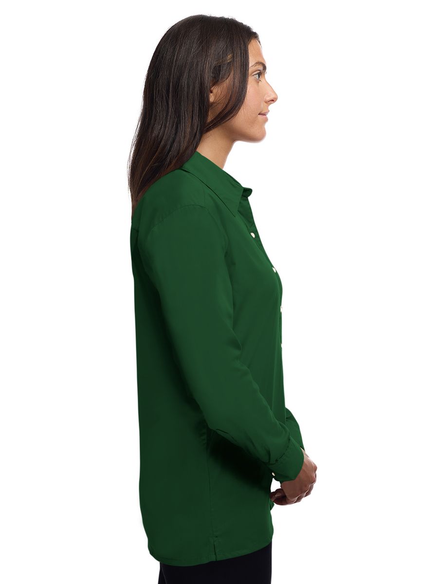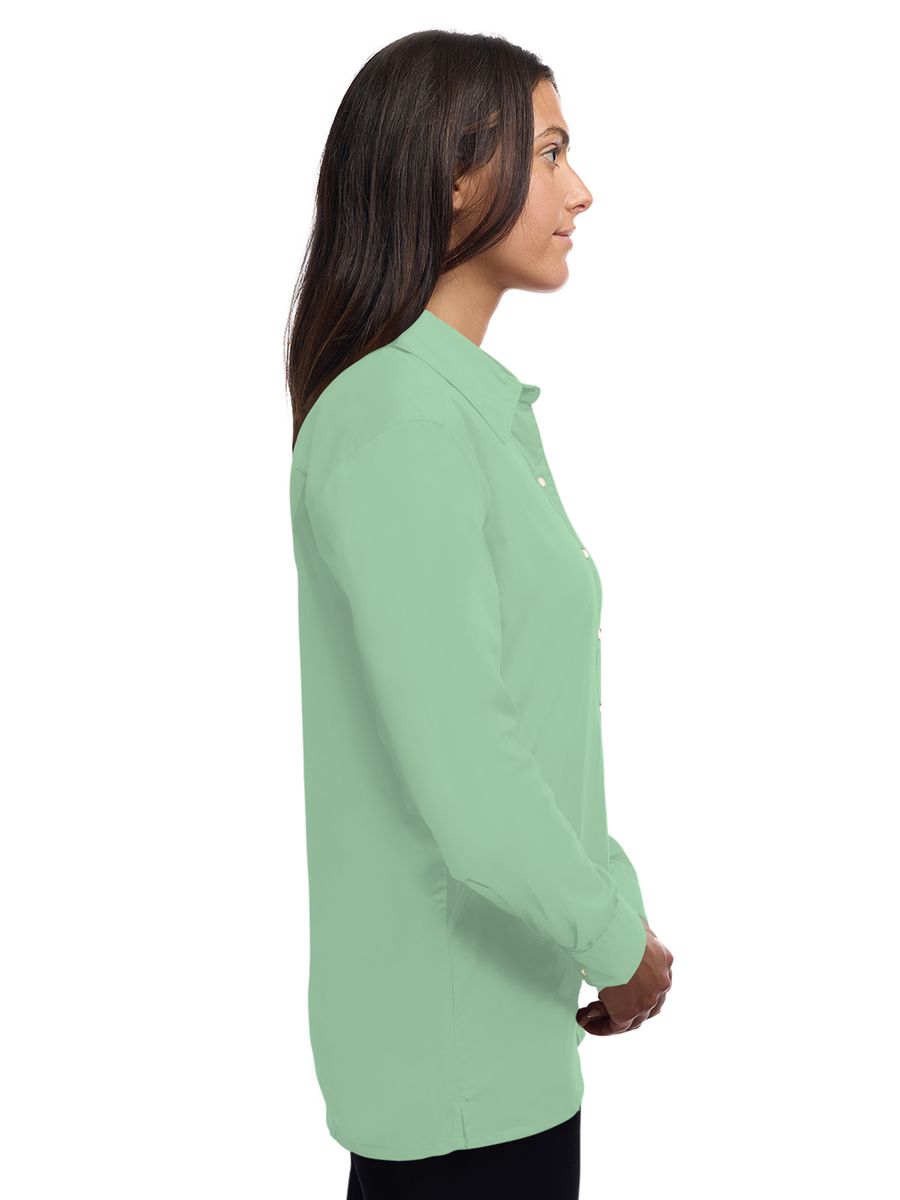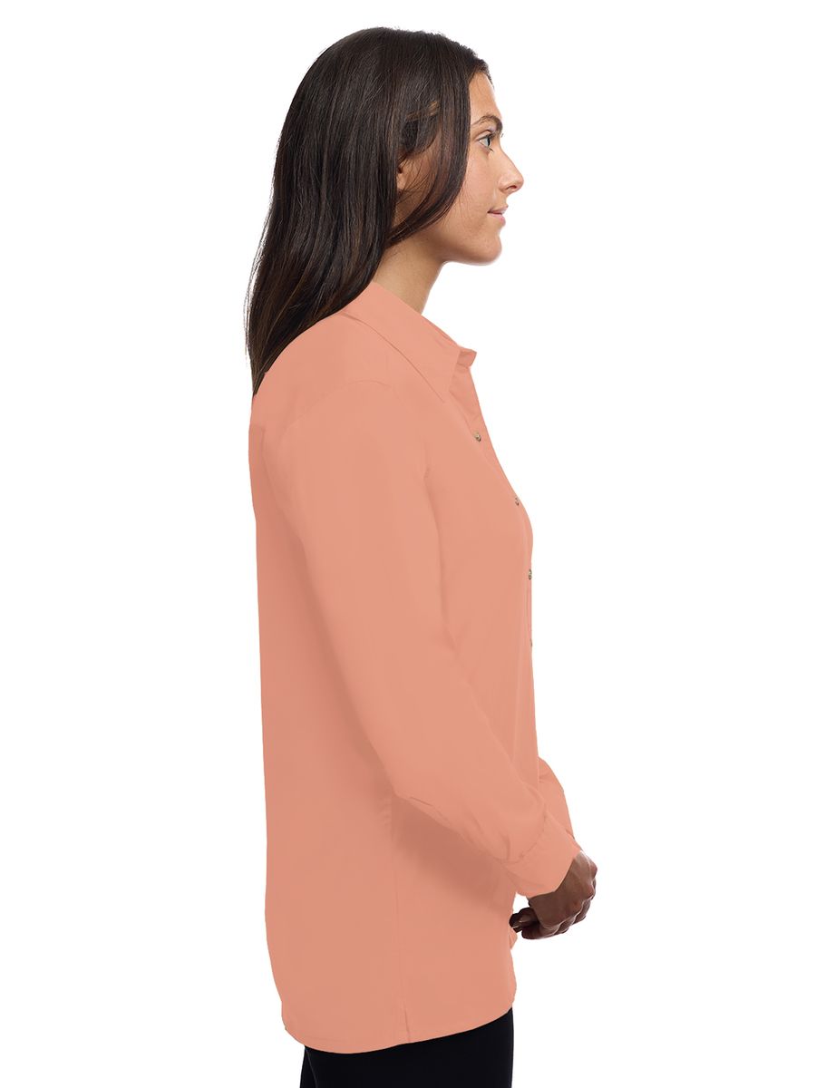Lightweight in warmth but heavy in style, this ladies 5.5 oz. long-sleeve shirt will make a great impression regardless of the occasion! Made of a 65% polyester/35% cotton blend, this eye-catching dress shirt has stain-release technology and is both wrinkle and crease resistant. It features a double-back yoke, two side back pleats, a straight hemmed bottom, bone-horn buttons, adjustable cuffs and a spread collar. Available in several colors and in sizes from XS to 4XL, this fashionable item is perfect fit for any wardrobe.