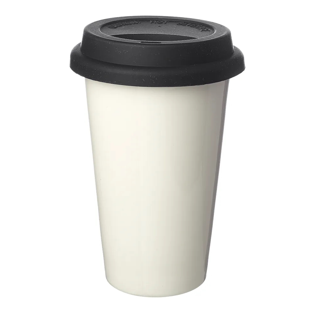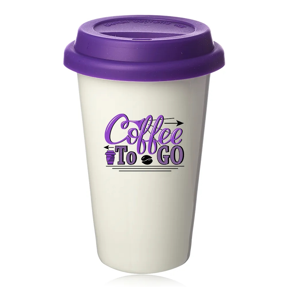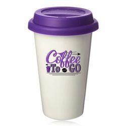 Double wall plastic porcelain tumbler with lid, 11 oz.