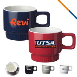 Bale Stack N Sip Mug is the perfect choice to boost the comfort of your everyday drinking habits. This 10 oz. stackable ceramic mug is made of stoneware and is crafted for effortless storage in your pantry or cupboard. It features color exterior and white glossy interior. Comes with a square handle design to hold it safely and comfortably. The bottom ridges on base of this mug prevent it from sliding on smooth tables. Perfect for pubs, restaurants and cafes. 3 days rush for 1 color imprint available upon request. Imprint drinkware only can be hand wash.