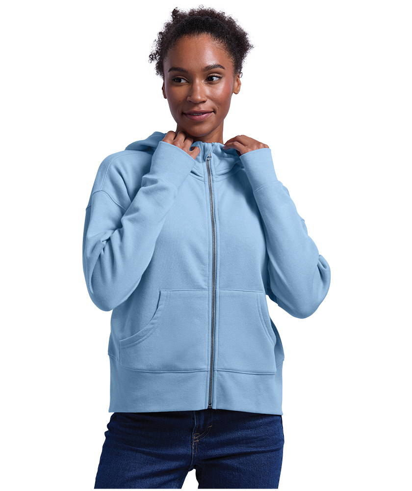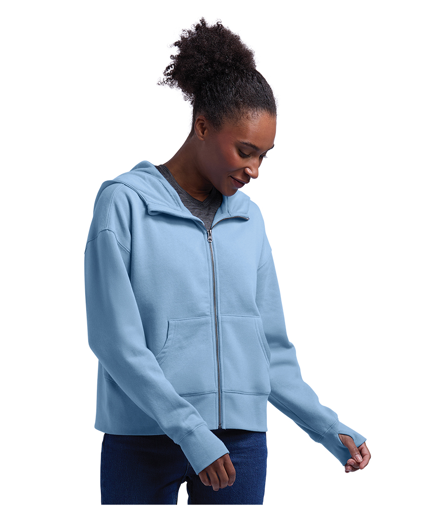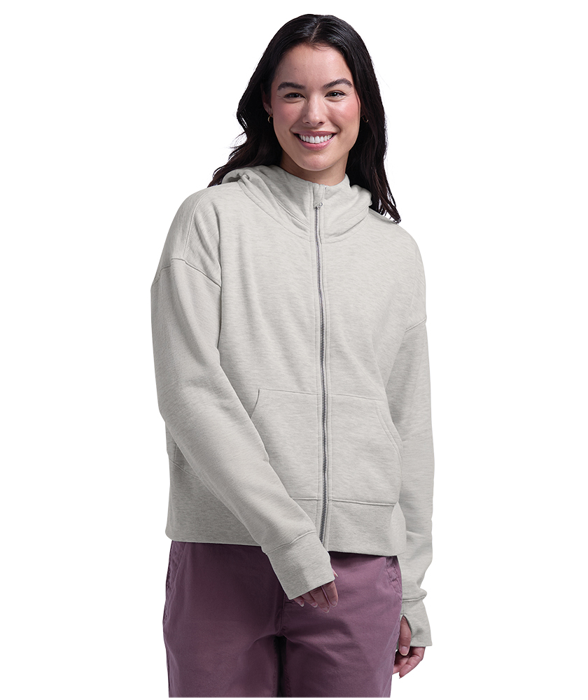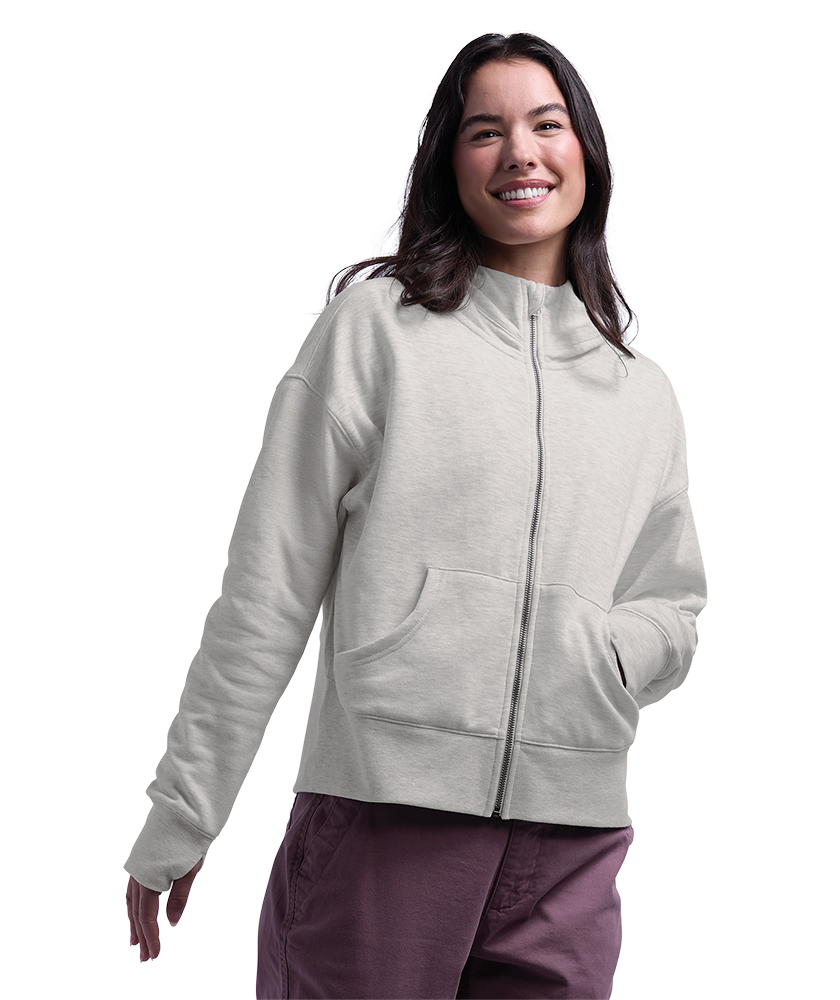 Highlights: Relaxed full-zip with a soft, cozy handfeel