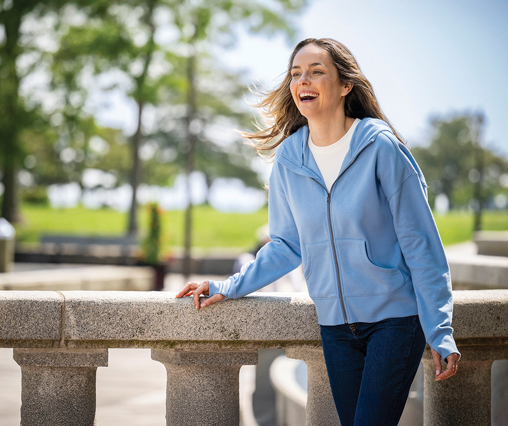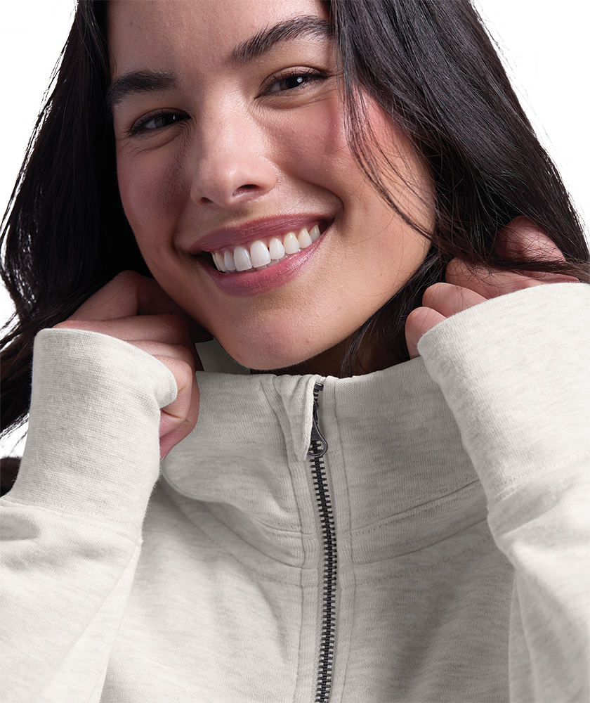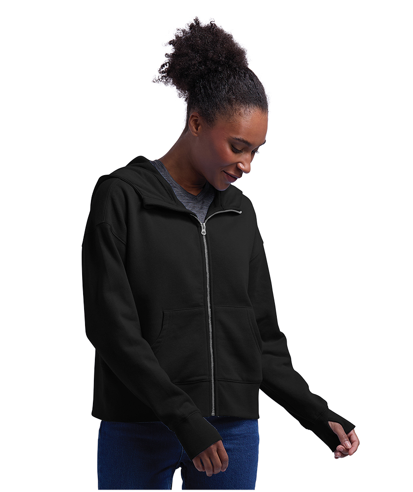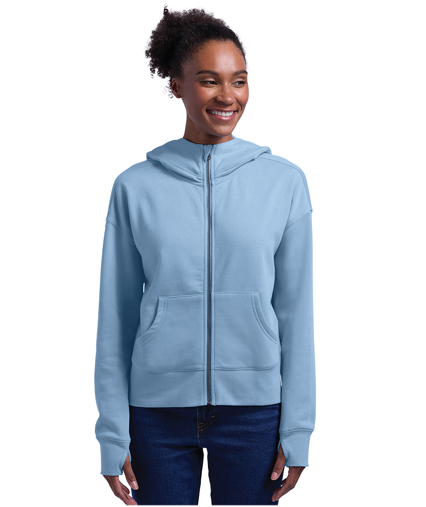 Highlights: Relaxed full-zip with a soft, cozy handfeel