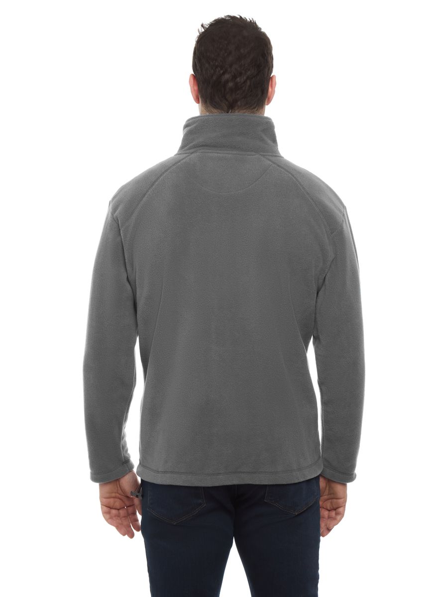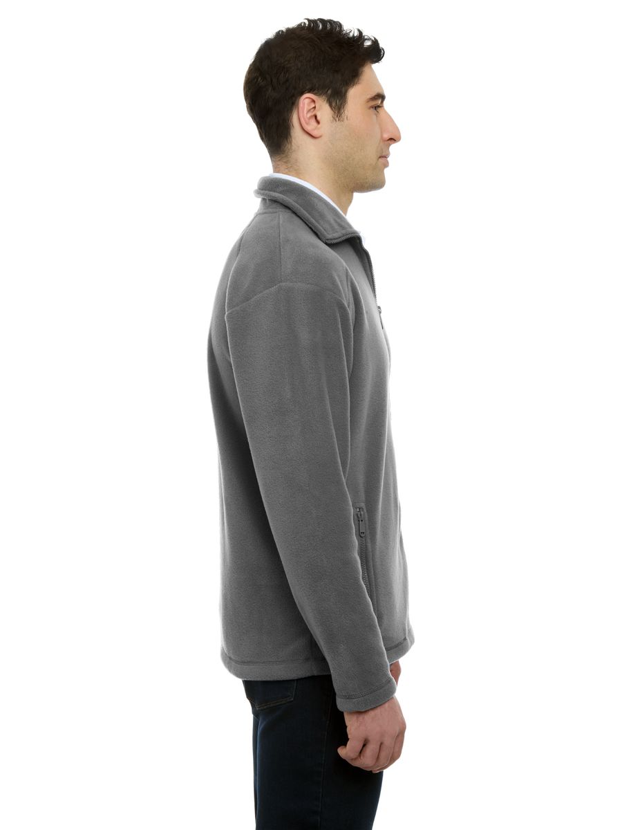 Pull off an incredible outdoor look thanks to this men's mid-weight full-zip jacket with matching color nylon zipper. Made of 100% polyester, this stylish 9.6 oz. jacket has an anti-pill micro fleece designed for warmth and comfort. It features two front zip pockets, a stitched shoulder yoke and an adjustable bungee drawstring. It comes in several colors and in sizes from S to 6XL. Dress to impress today!