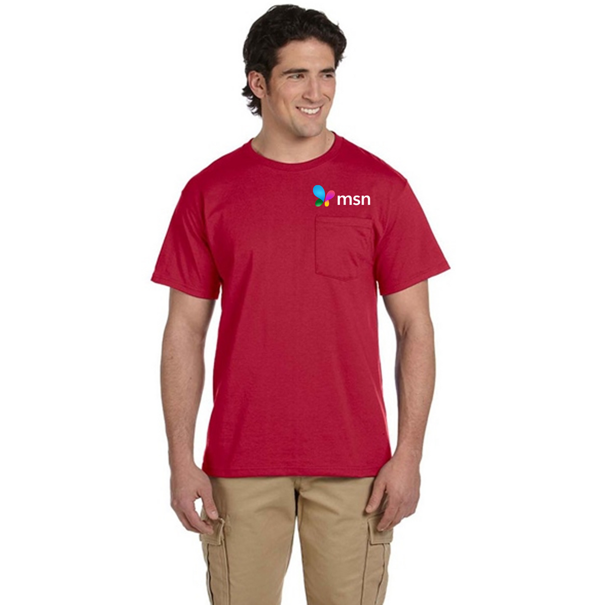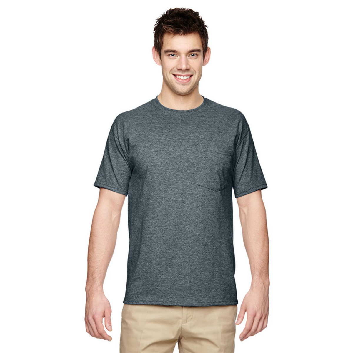 Get customers excited this summer with our USA Printed Jerzees T-Shirt w/ Pocket 5.6 oz 50/50 Cotton / Polyester Preshrunk! This round neck T-shirt is ideal for sports & outdoor activities and features a large imprint area on Left/Right Breast: 4.00" dia. as well as optional on Full Back: 12.00"W x 12.00"H, ideal for Maximum Brand exposure. It is made of Preshrunk 5.6oz 50/50 Cotton / Polyester. With five-point left-chest pocket, these T-shirts also feature double-needle stitched hemmed.sleeves.and bottom. Decorated in USA for faster delivery
