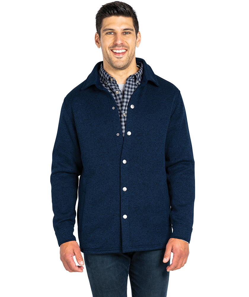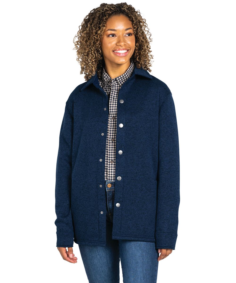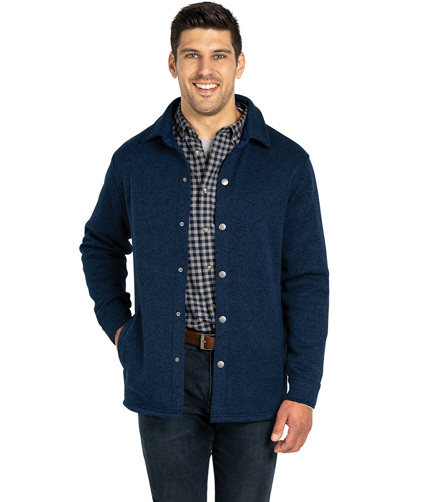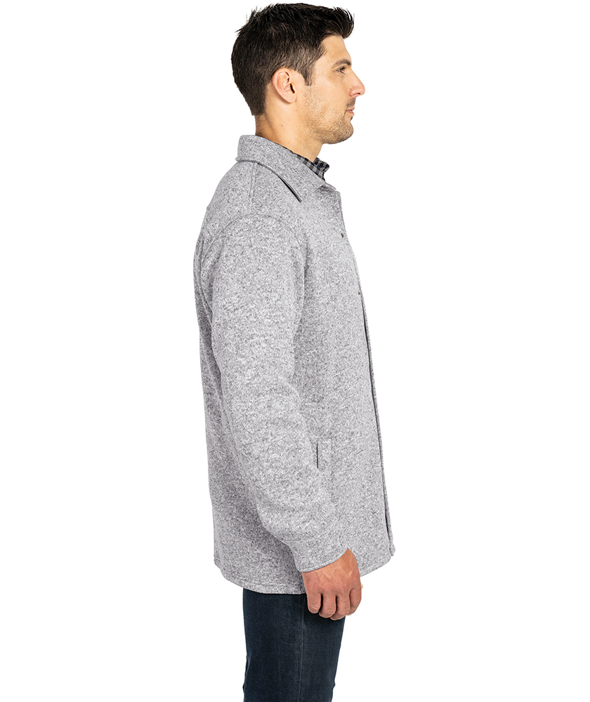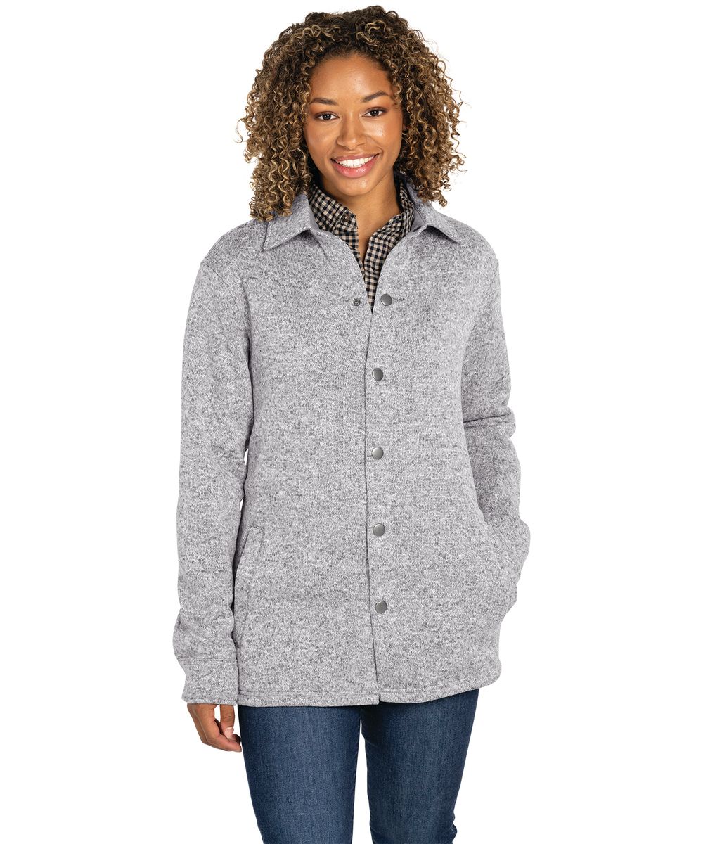 Perfect for everyday styles, the Heathered Fleece Snap Shacket is equal parts sweatshirt and jacket come together for a casual, elevated look. Made from 100% unique polyester fleece, this shacket's fabric is brushed on the inside for softness and yarn-dyed to produce a heathered appearance. Features snap placket with single-snap cuff for easy on-off. Available in multiple colors, this customized pullover makes a great giveaway at your next event!