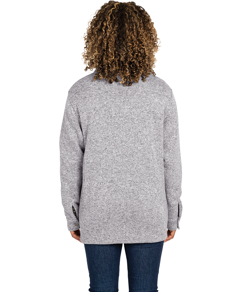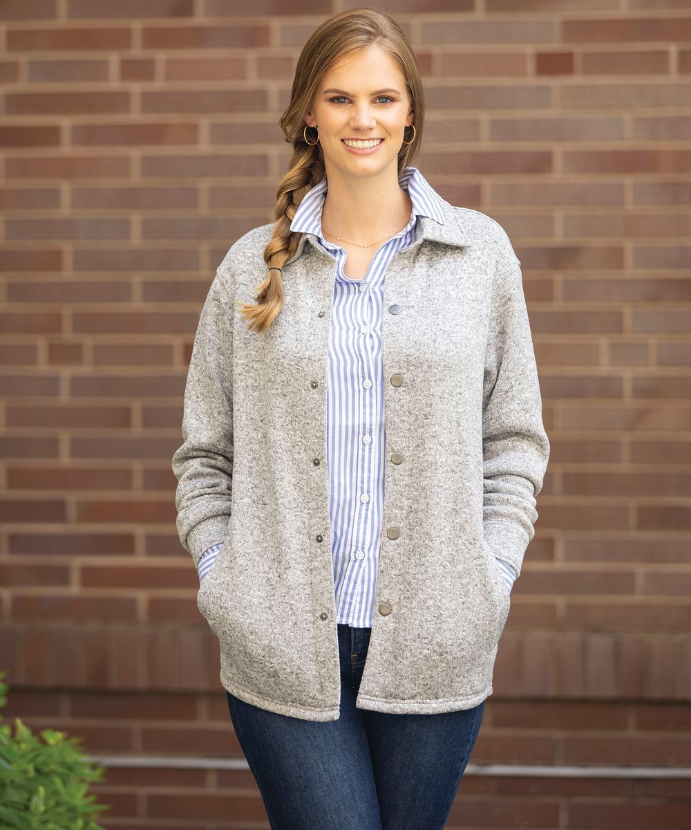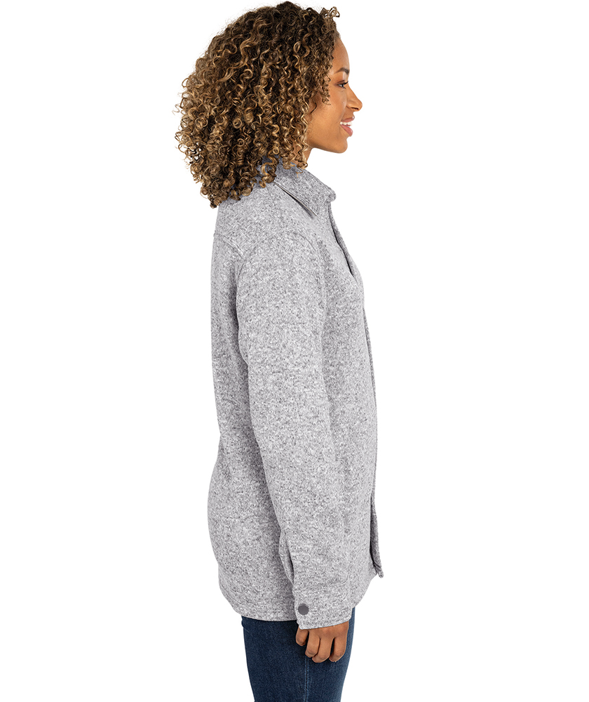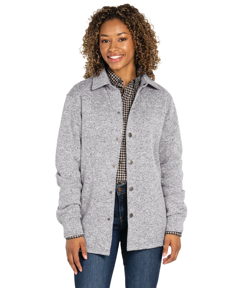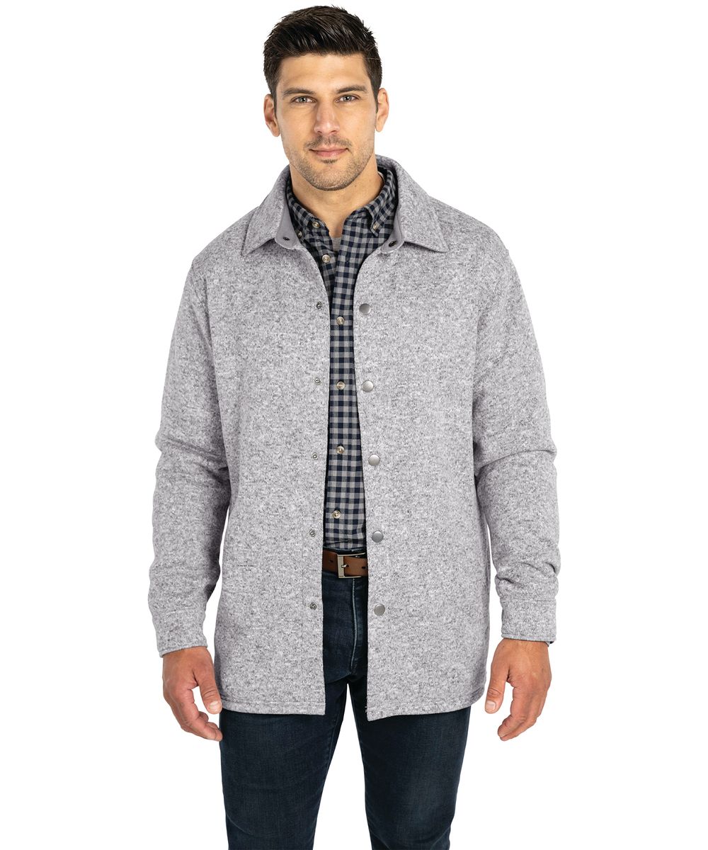 Perfect for everyday styles, the Heathered Fleece Snap Shacket is equal parts sweatshirt and jacket come together for a casual, elevated look. Made from 100% unique polyester fleece, this shacket's fabric is brushed on the inside for softness and yarn-dyed to produce a heathered appearance. Features snap placket with single-snap cuff for easy on-off. Available in multiple colors, this customized pullover makes a great giveaway at your next event!