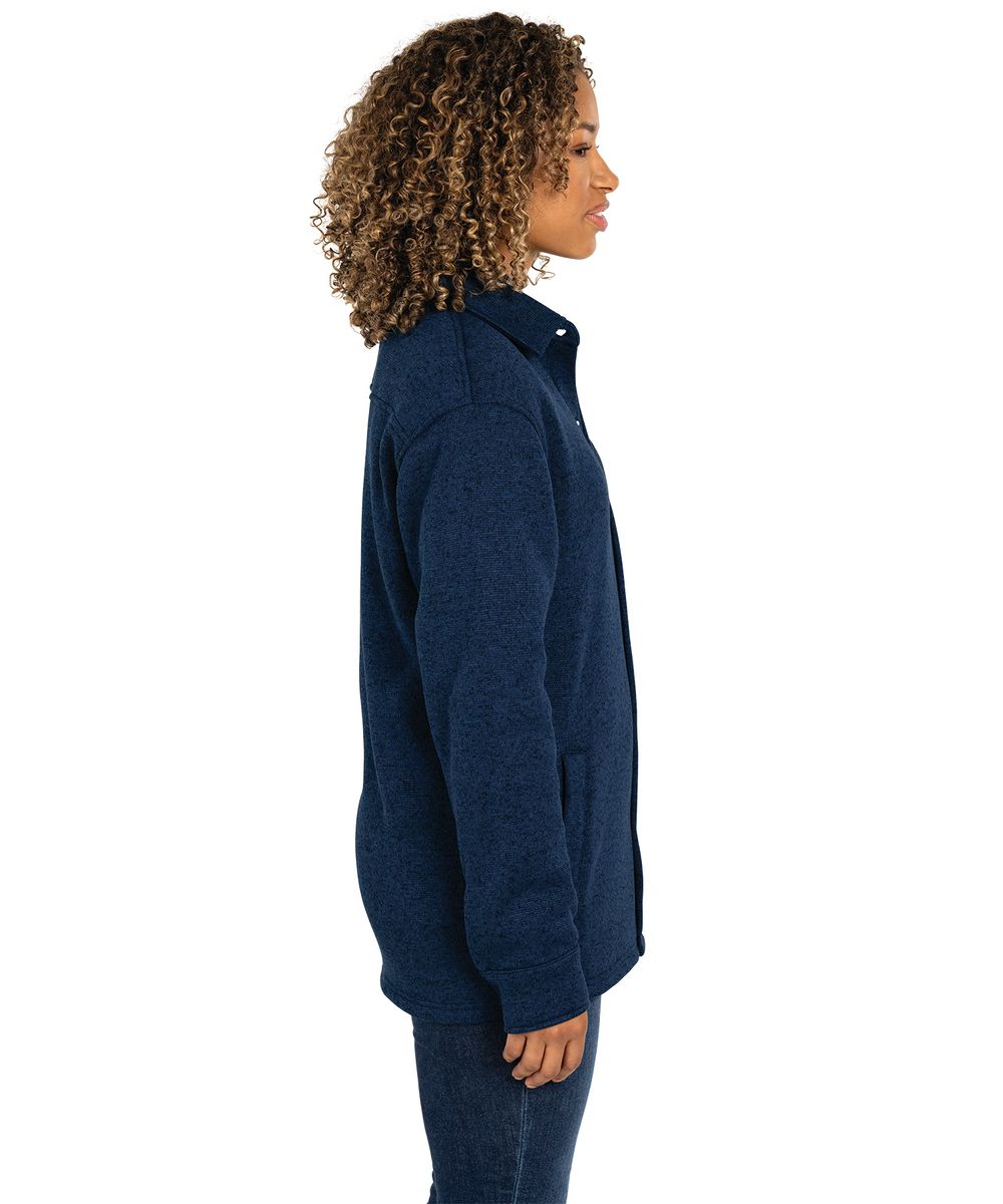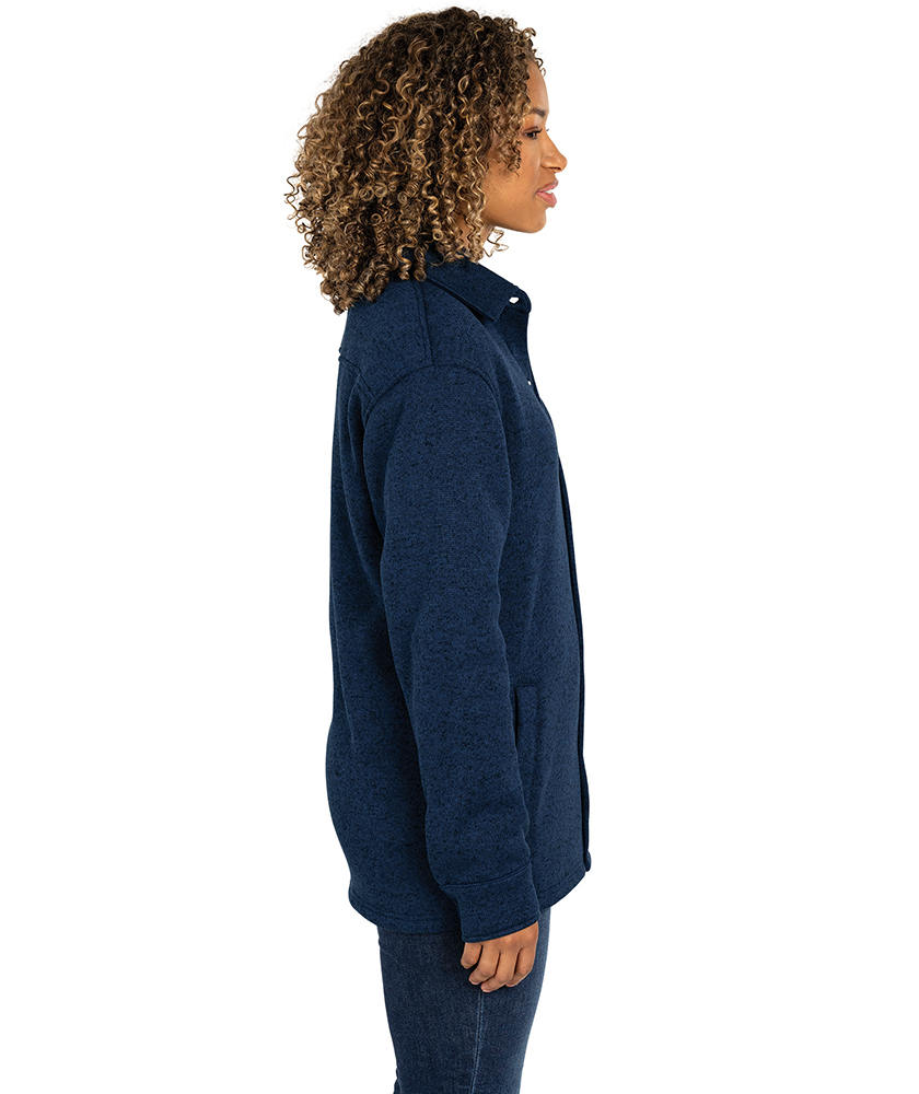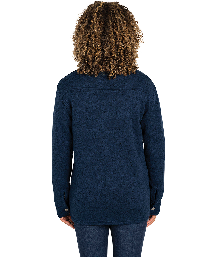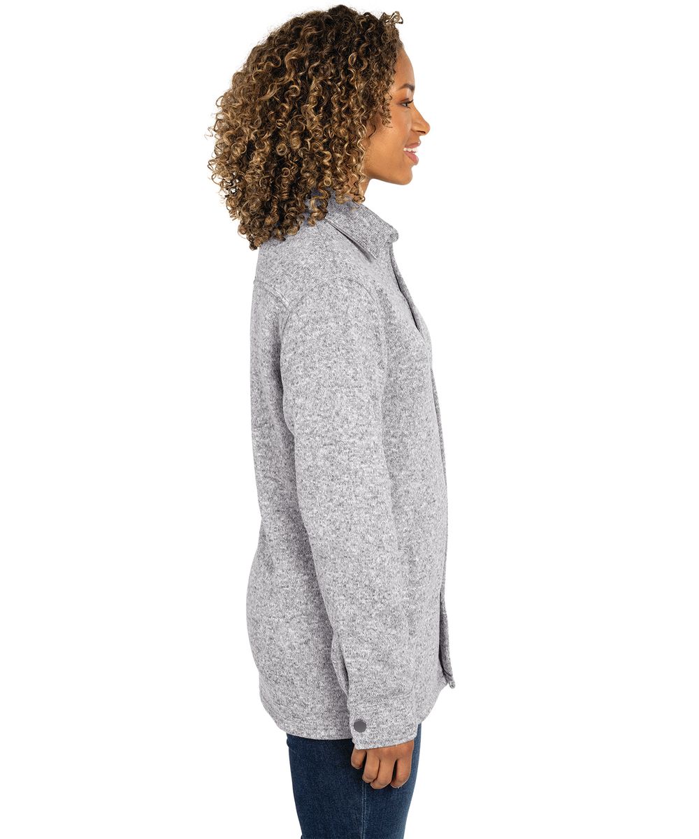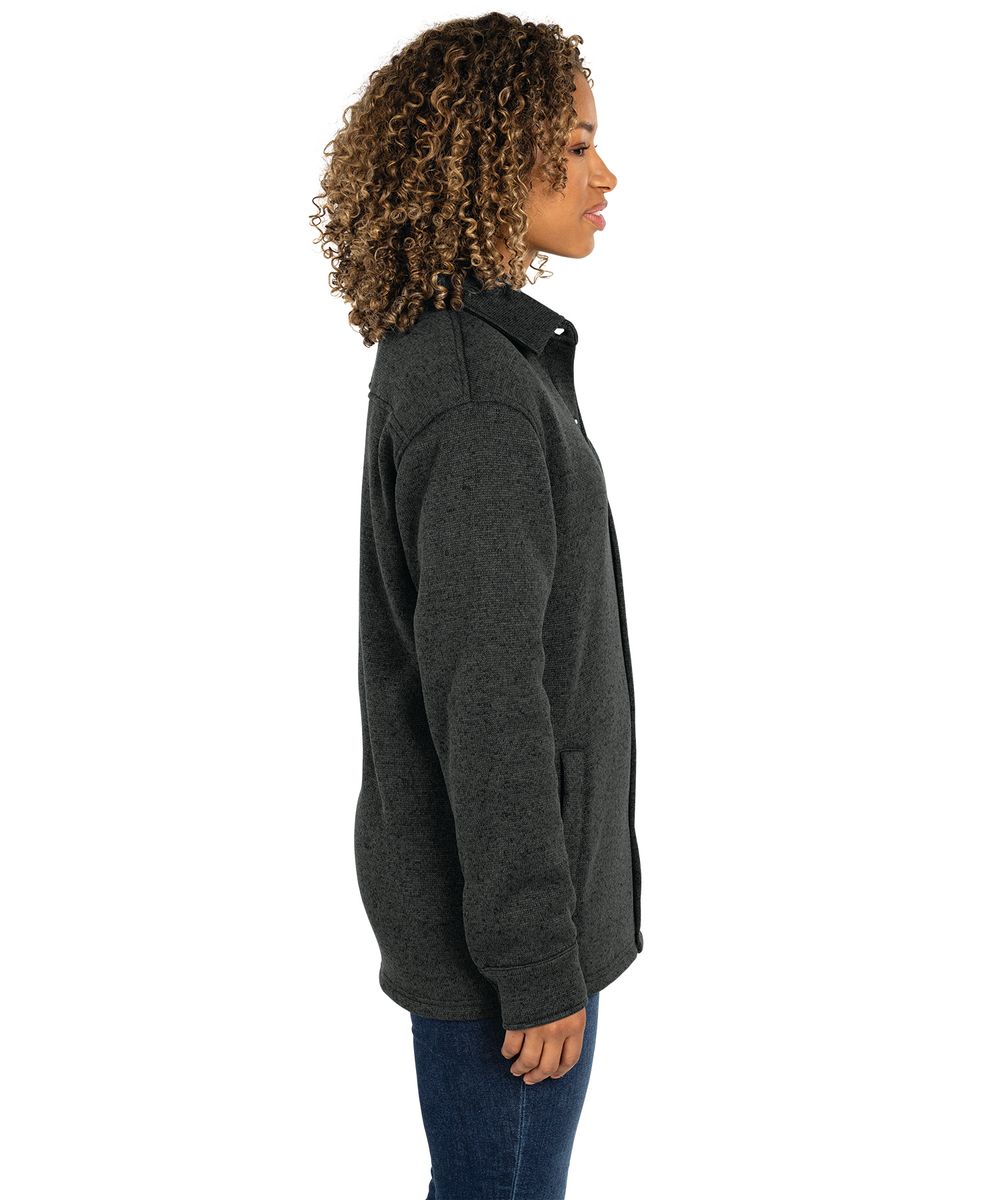 Perfect for everyday styles, the Heathered Fleece Snap Shacket is equal parts sweatshirt and jacket come together for a casual, elevated look. Made from 100% unique polyester fleece, this shacket's fabric is brushed on the inside for softness and yarn-dyed to produce a heathered appearance. Features snap placket with single-snap cuff for easy on-off. Available in multiple colors, this customized pullover makes a great giveaway at your next event!